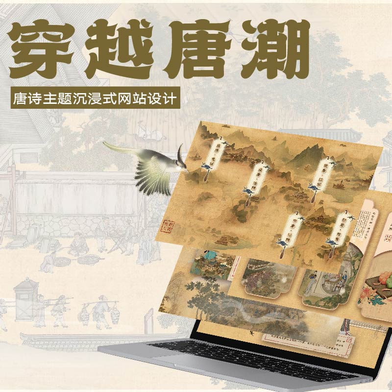 作品简介:以沉浸式网站作为载体,借助对“初唐、盛唐、中唐、晚唐”四首代表诗作进行情景重塑以及构建互动内容,以此来呈现其兴衰的历程和代表性历史景区。此项目旨在为地方文旅产业赋能之际,推动唐诗文化在数字时代进行传播与传承,提高用户的文化认同感以及民族自豪感。